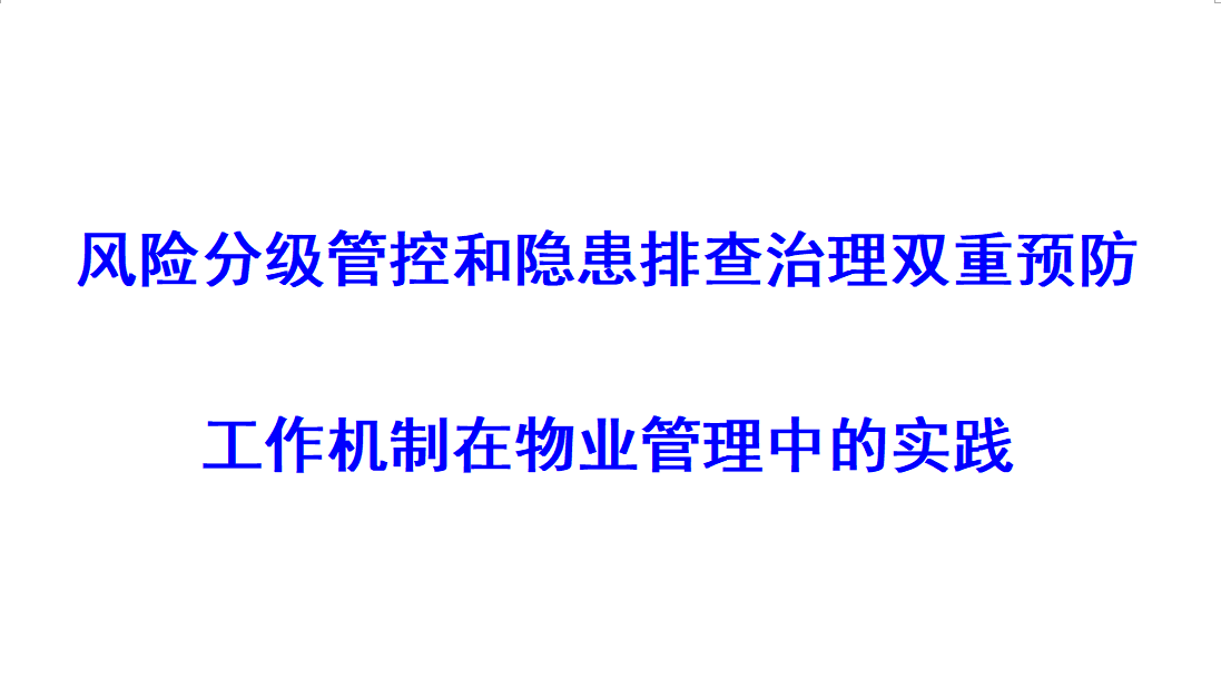 • 風(fēng)險分級管控和隱患排查治理雙重預(yù)防工作機(jī)制在物業(yè)管理中的實(shí)踐 [2021-01-22]